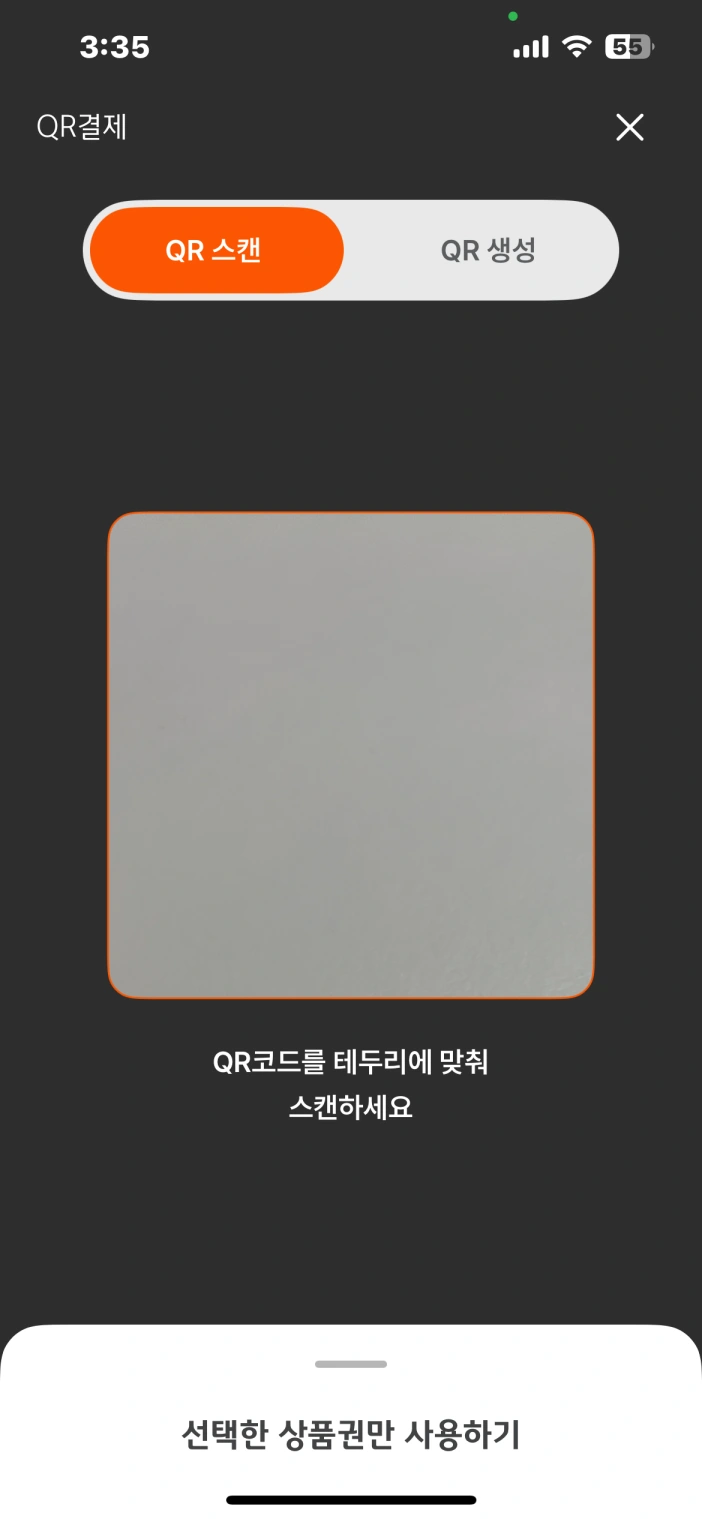 - QR 인식 – 매장 QR 스캔 또는 내 QR 제시